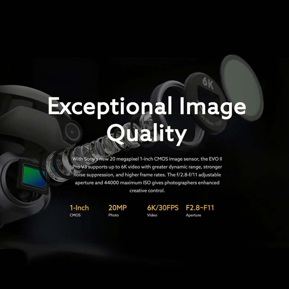 Dron Profesional Autel Robotics EVO II Pro V3 con Sensor Sony de 1 Pulgada CMOS 6K Ultra HD, Apertura F2.8-F11, Algoritmo Moonlight, 15 km, 40 Minutos de Vuelo