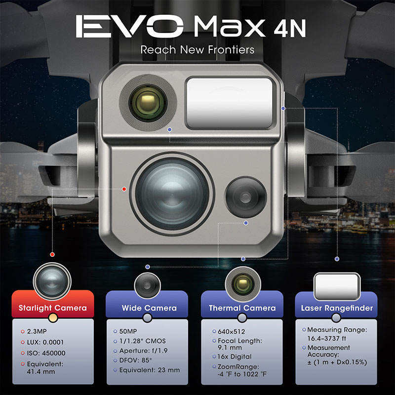 Dron Autel Robotics EVO Max 4N V2 con Cámara de Visión Nocturna, Quadcopter Profesional Comercial con Imágenes Térmicas