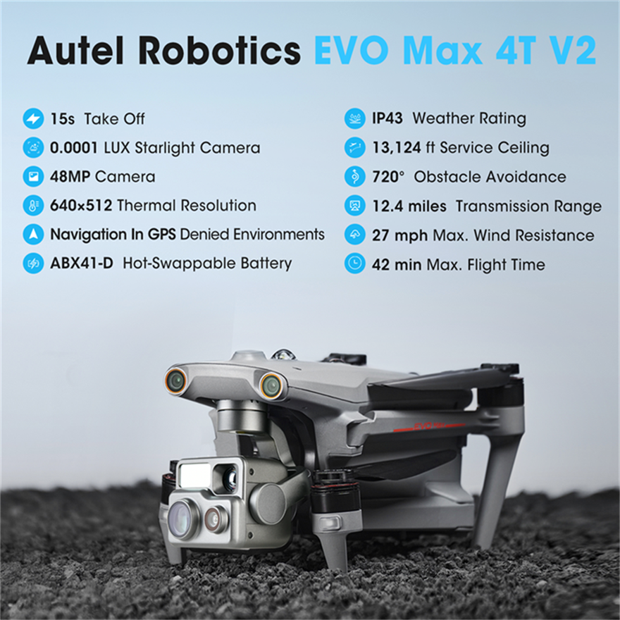 Dron Autel Robotics EVO Max 4T V2 con Imagen Térmica, Batería de Larga Distancia de 20 KM, Quadcopter Comercial con Cámara 8K