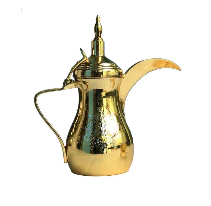 Auténtica cafetera árabe Dallah hecha a mano de latón y acero inoxidable, tetera de estilo medioriental, decoración elegante y tradicional para la cocina.