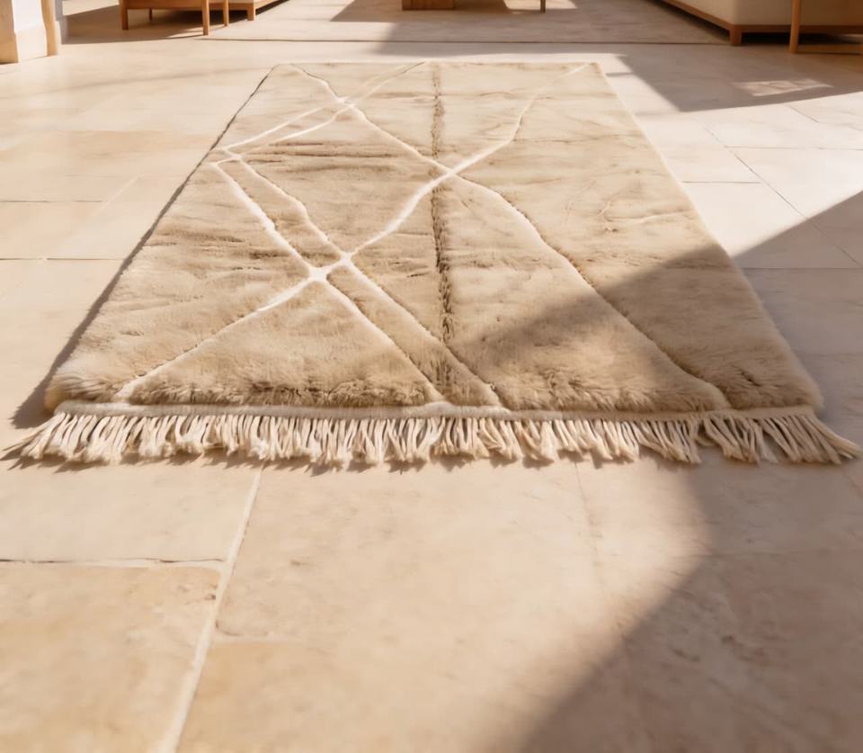 Auténtica Alfombra Marroquí Beni Ourain, Alfombra de Lana Tejida a Mano, Alfombra Berber Marroquí Beni Ourain de Lujo, Alfombra de Lana de Pelo Largo