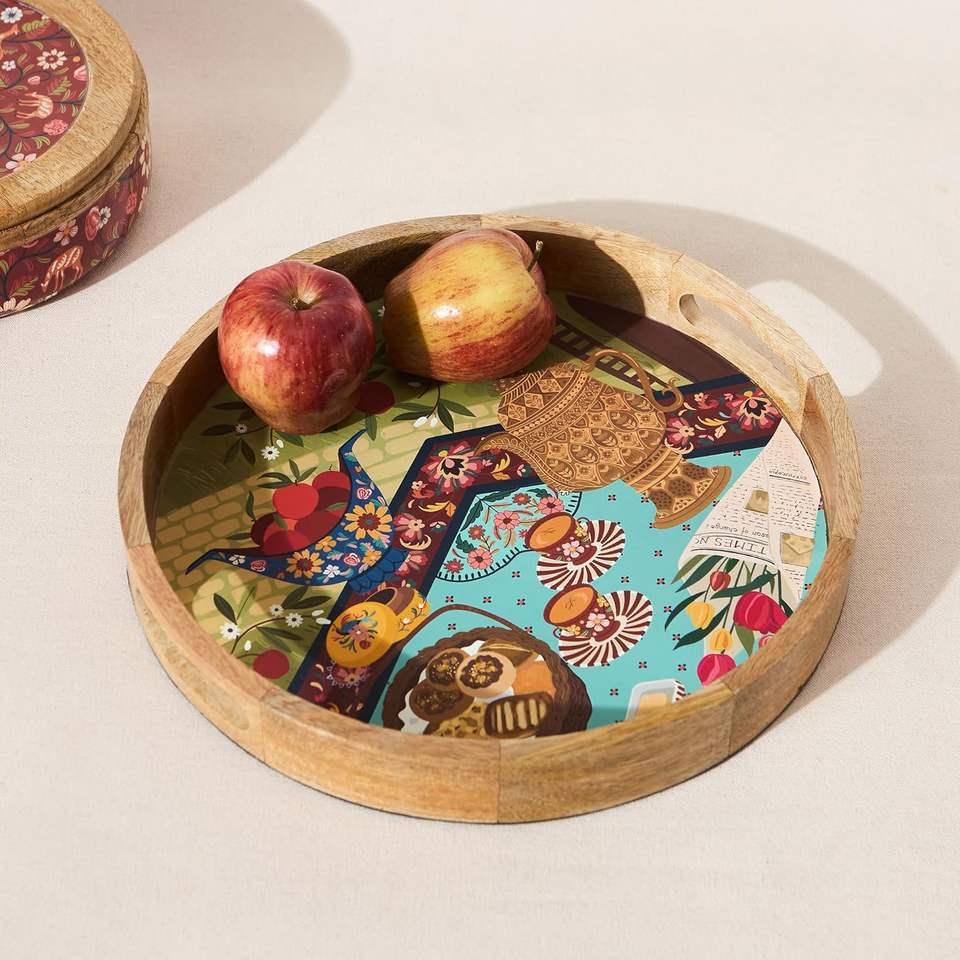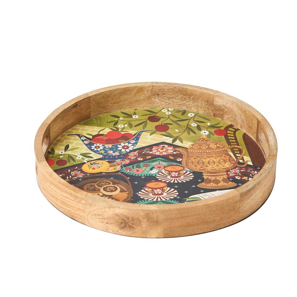 Bandeja de Servir de Madera con Acabado Lacado Ecológico de Diseño Auténtico, Bandeja Decorativa Multiusos para el Hogar, Cocina y Desayuno