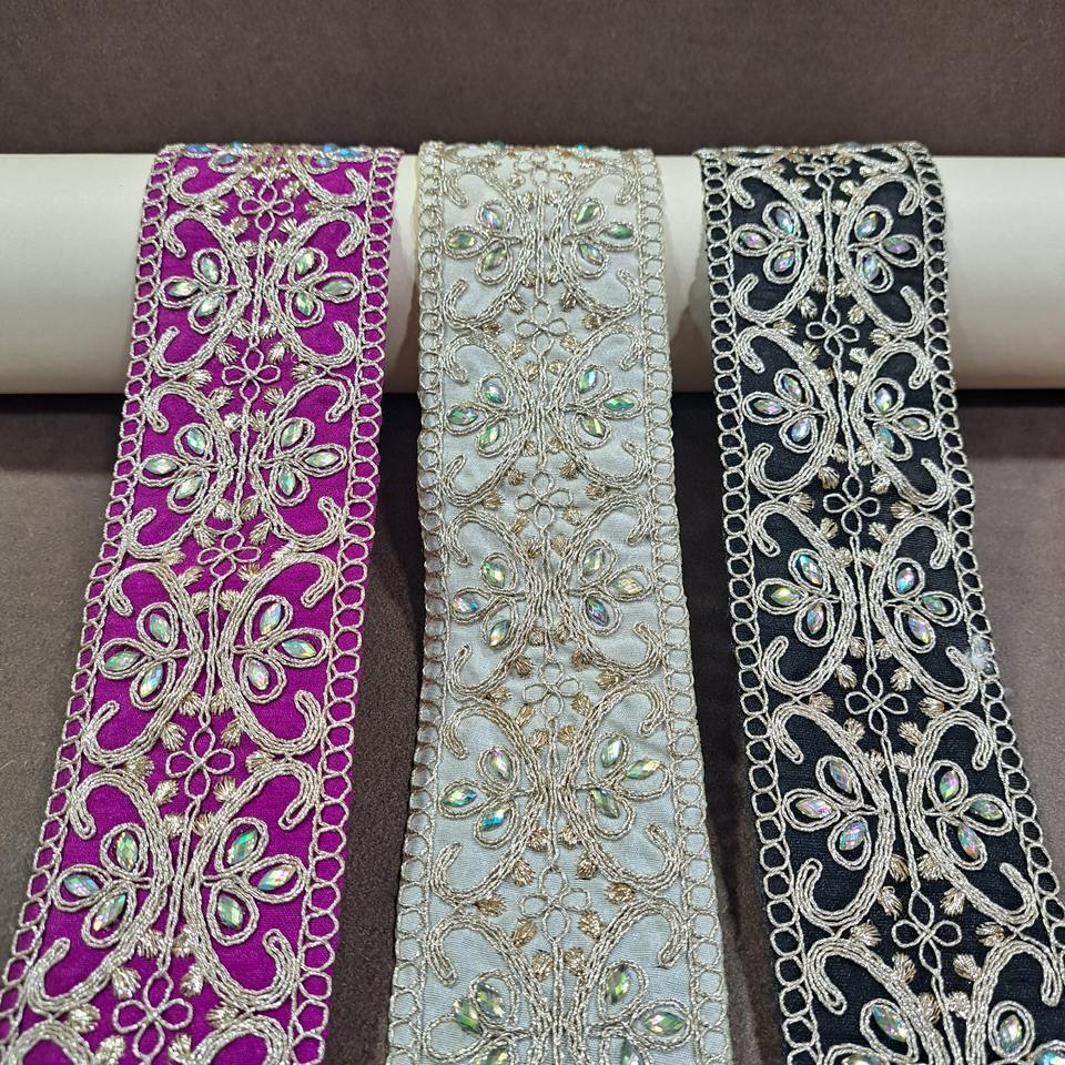 Ribete de Encaje Bordado Auténtico, Ribete de Encaje Bordado a Mano para Vestidos de Noche Elegantes, Bordes de Bordado