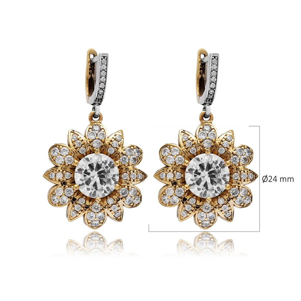 Auténtico diseño de forma de flor CZ piedra otomana pendientes colgantes turco hecho a mano venta al por mayor 925 joyería de plata esterlina