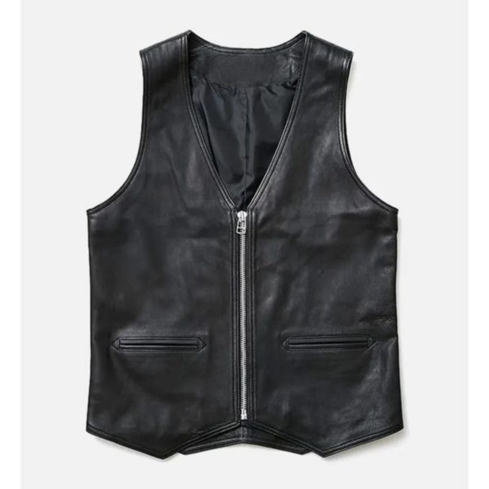 Chaleco de Motocicleta de Cuero Genuino Auténtico para Hombre, Diseñado para una Conducción Resistente con un Aspecto Clásico y Elegante y una Construcción Robusta y Duradera