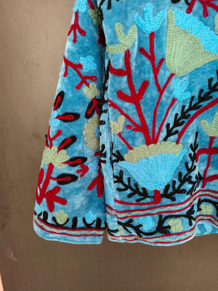 Chaqueta Acolchada Auténtica Bordada a Mano, Ecológica y Transpirable, con Motivos Florales Vibrantes y Forro de Algodón, Estilo Uzbeco
