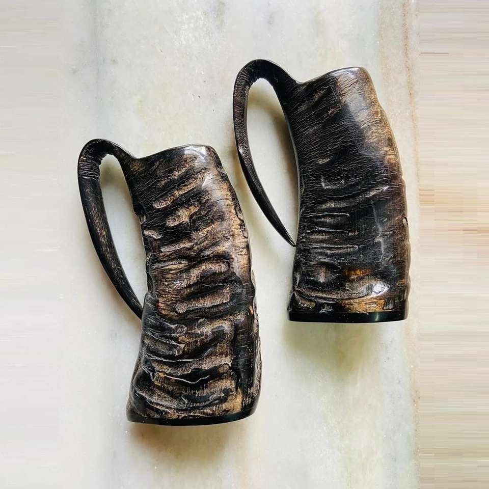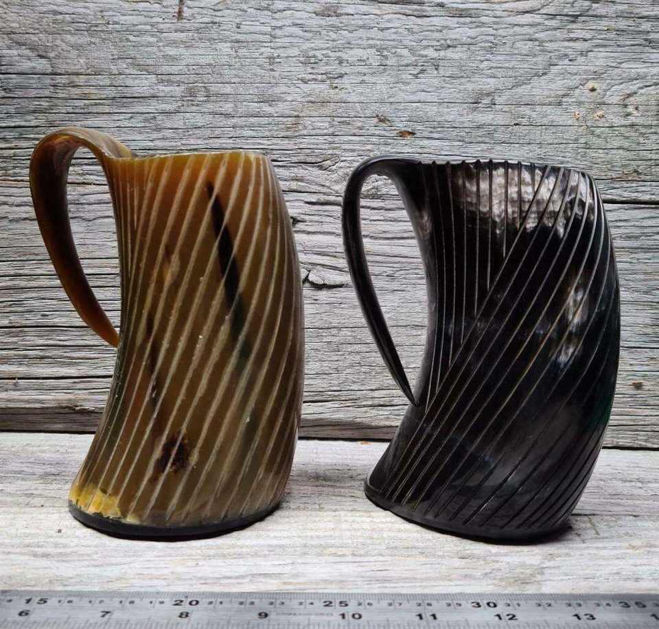 Authentic Handcrafted Handmade Eco-Friendly Viking Style Horn Mug Rustic Beer Stein Tankard Handle Mead Wine Ale Liquor Lovers