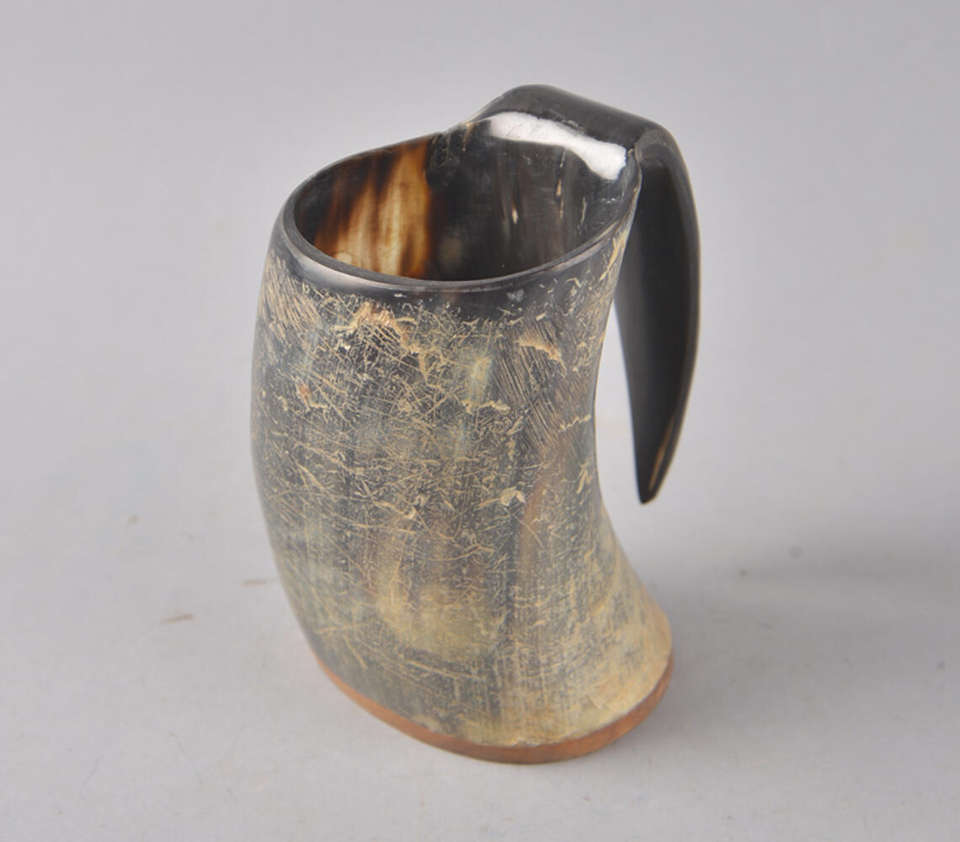 Auténtico Cuerno Vikingo para Beber, Hecho a Mano con Grano Natural, con Textura Única Desgastada, Estilo Nórdico Tradicional Pulido
