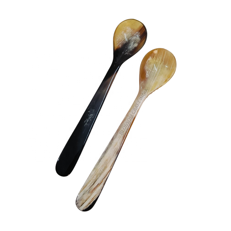Cuchara de cuerno de astas hecha a mano auténtica y cuchara de sopa de cuerno de búfalo real para comer y desayuno
