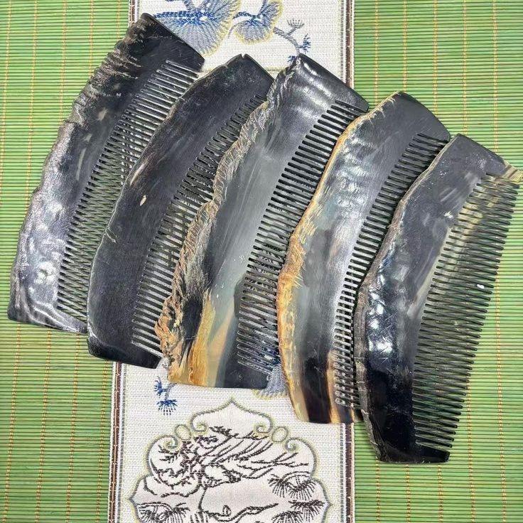 Peine de cuerno auténtico hecho a mano para peinar, desenredar y cuidar el cabello, herramienta de belleza profesional para peluquería y salón, acabado natural
