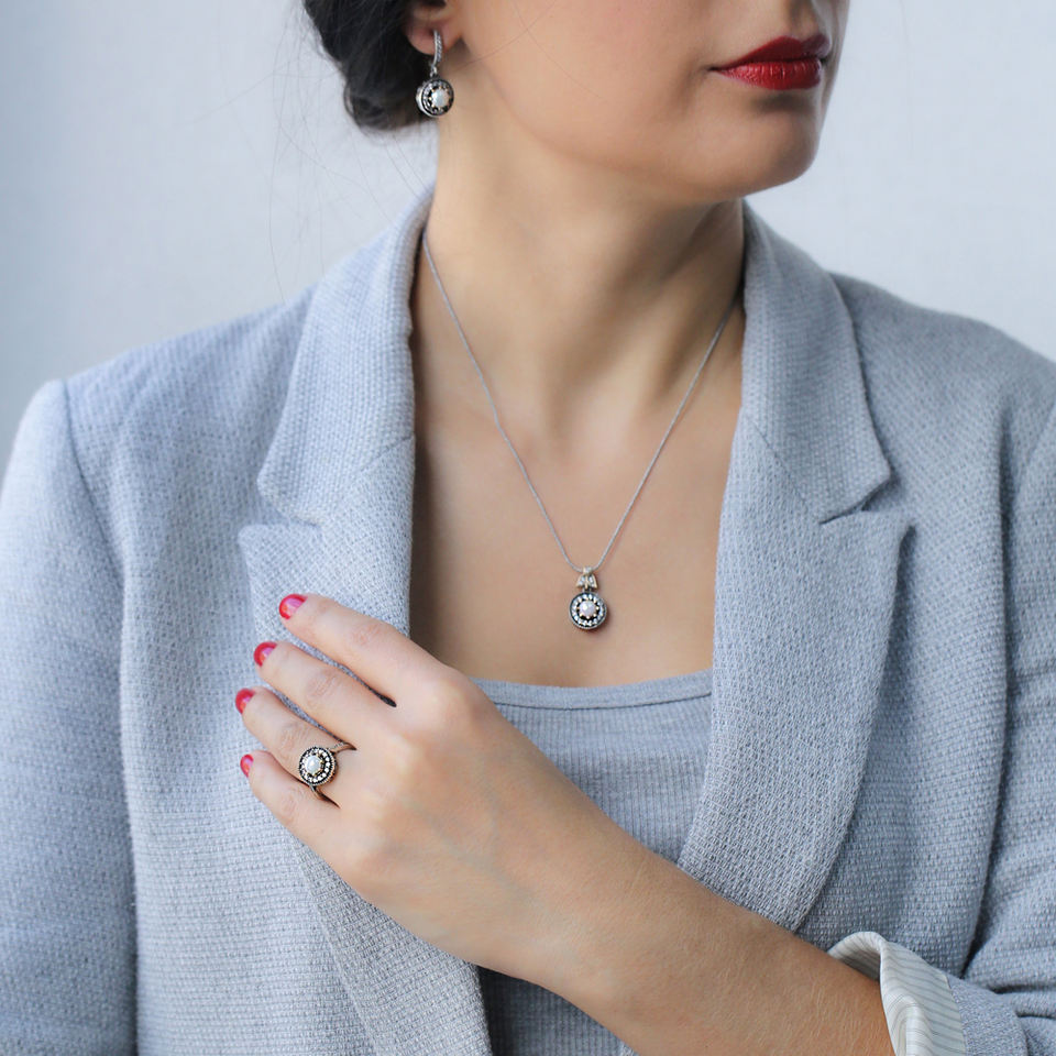 Conjunto de joyería de plata turca para mujer, joyería de plata 925 auténtica hecha a mano, moda de moda