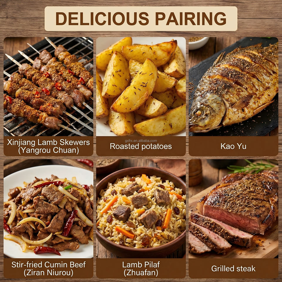 Uso:Barbacoa, Curry, Brochetas de cordero, Horneado, Salchicha