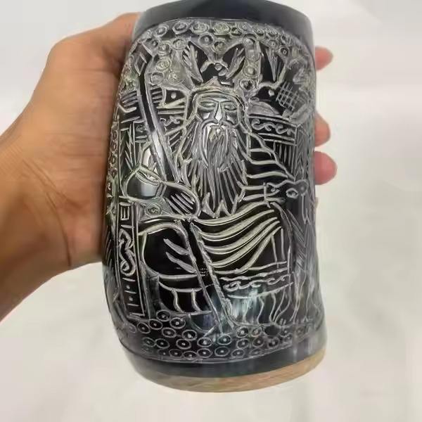 Auténtica Taza de Cuerno Natural de la India, de Lujo, Ideal para Oficina, Hogar y Uso en Exteriores, para Regalos y Eventos, Incluye Tapa