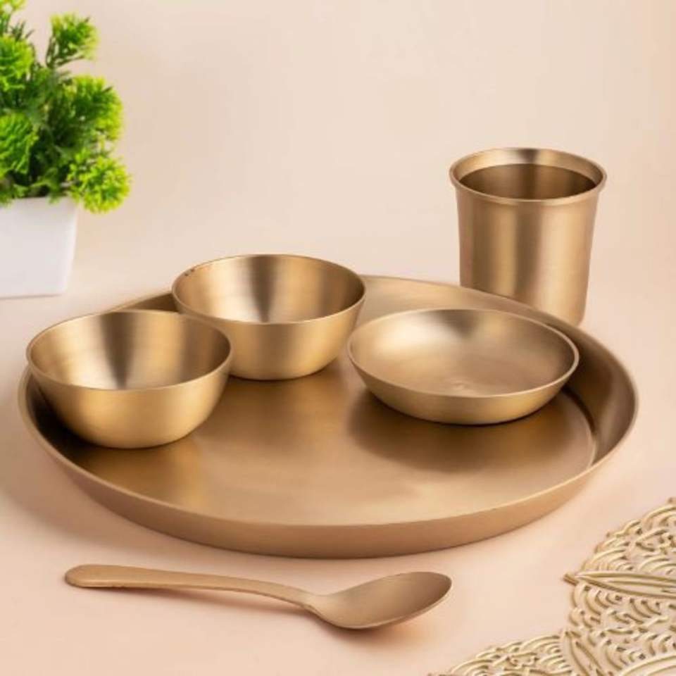 Auténtico Juego de Vajilla de Bronce Kansa Hecho a Mano para un Estilo de Vida de Bienestar y Ayurveda