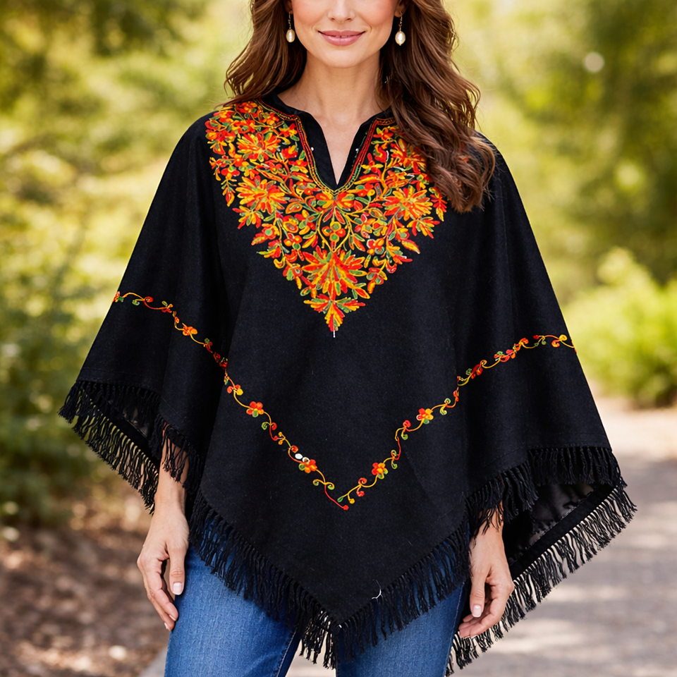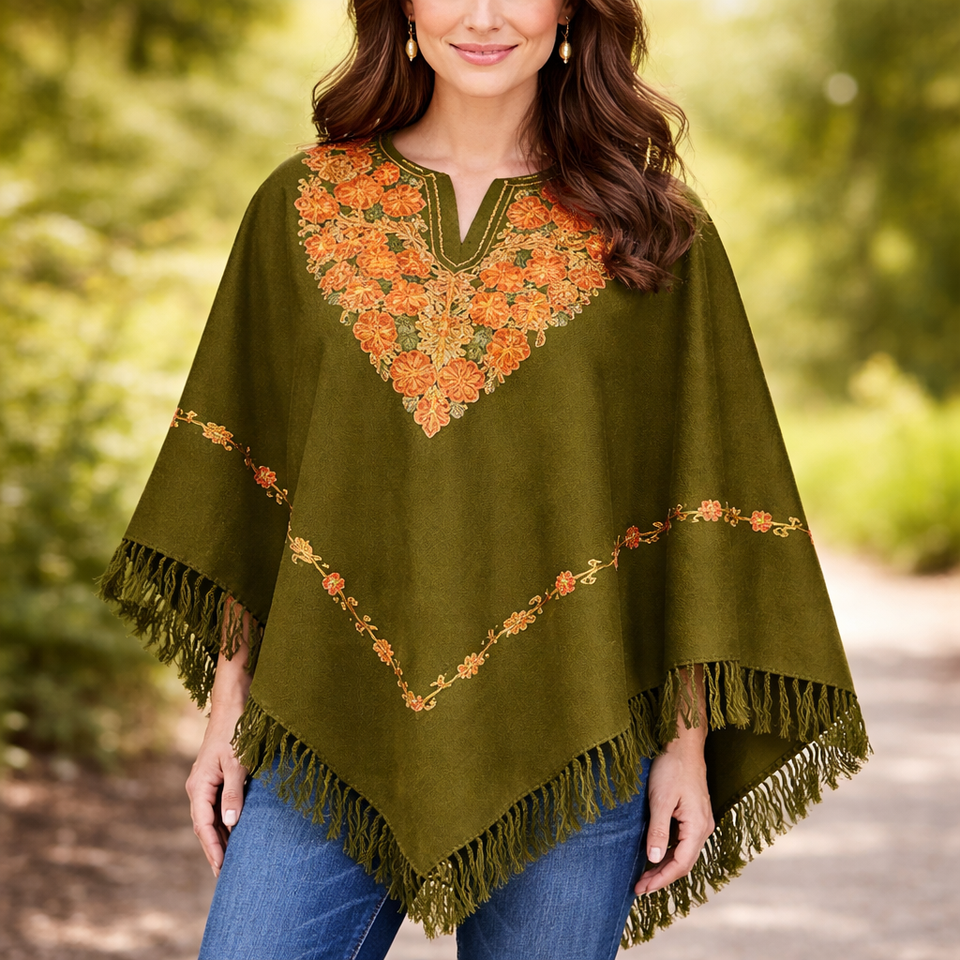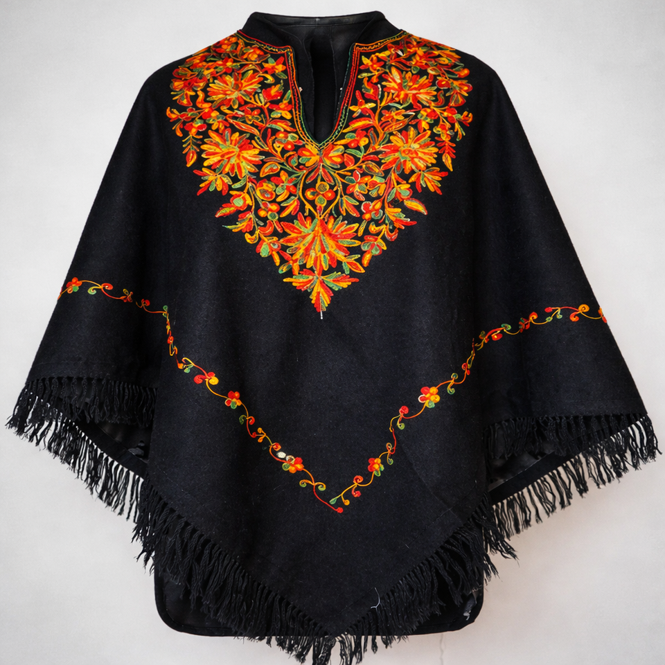 Auténtico chal de lana bordado a mano de Cachemira, ecológico y respetuoso con el medio ambiente | Elegante Pañuelo Floral Aari | Estola de Invierno Premium con Sensación de Pashmina para