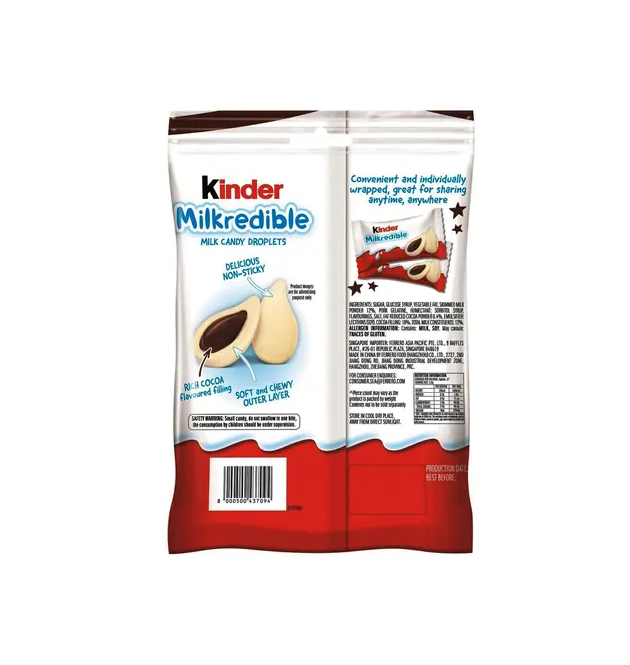 Auténtico Kinder Milkredible Choco Mini 23.4g, Caramelo Suave y Masticable con Relleno Cremoso de Cacao y Leche, Suministro al por Mayor de Ferrero