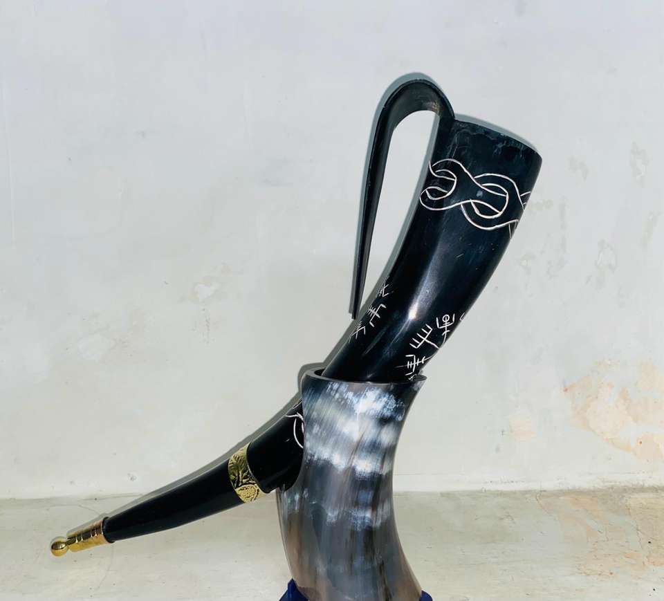 Auténtico Medieval Inspirado 650ml Copa vikinga natural Cuerno para beber Ecológico Pulido Decoración de fiesta en casa para el hombre del novio