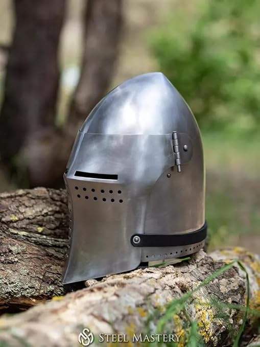 Auténtico casco de caballero medieval Bascinet | Traje de armadura de acero para SCA y juego de rol | Acabado plateado de tamaño adulto