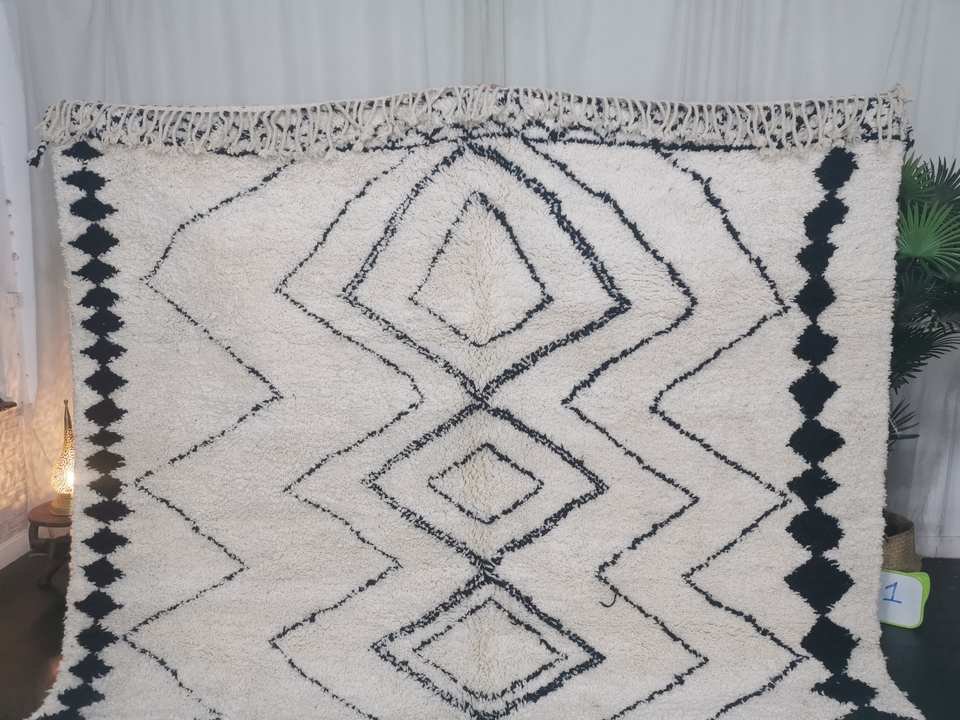 Auténtica Alfombra de lana hecha a mano marroquí de alta calidad Simple atractivo blanco negro alfombra bereber patrón geométrico para decoración del hogar