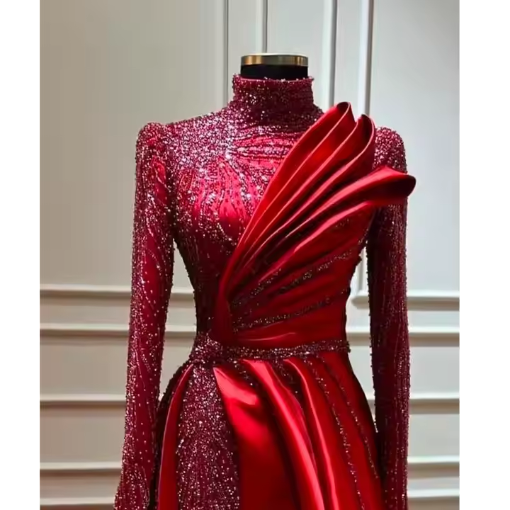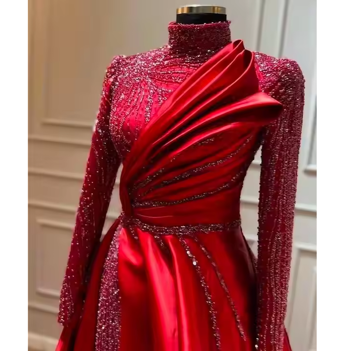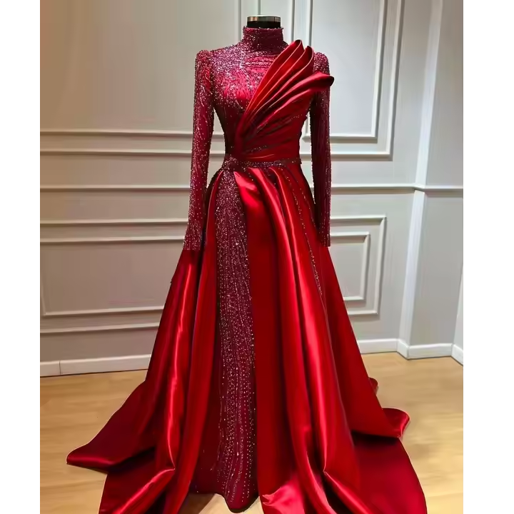 Auténtico vestido de diseñador marroquí Vintage fiesta 100% Satén de seda exquisita artesanía lujosa silueta sofisticada
