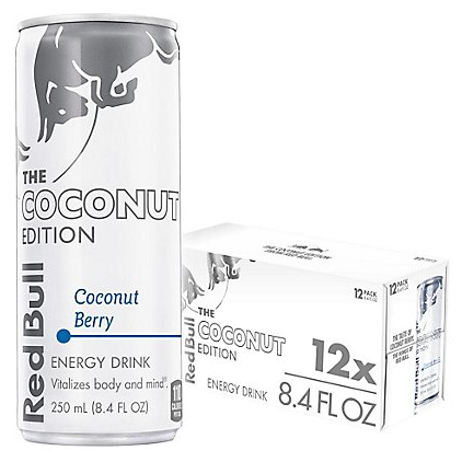 Bebida Energética Red Bull Coconut Edition Auténtica, Edición Coco y Bayas, 12 Latas de 250 ml, Sabor Tropical Refrescante, Suministro al por Mayor
