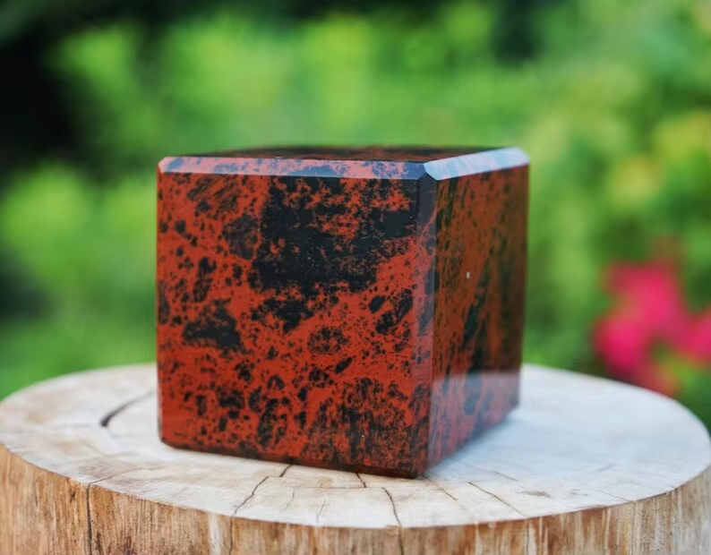Auténtico Cubo de ágata de caoba roja con patrones intrincados para decoración espiritual Meditación Espacio y equilibrio energético