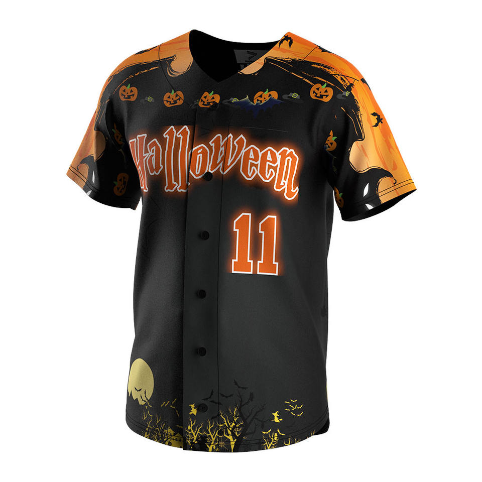 Auténticas calabazas de Halloween unisex patrón 3D alta calidad impresa botón abajo béisbol Jersey proveedor de Pakistán
