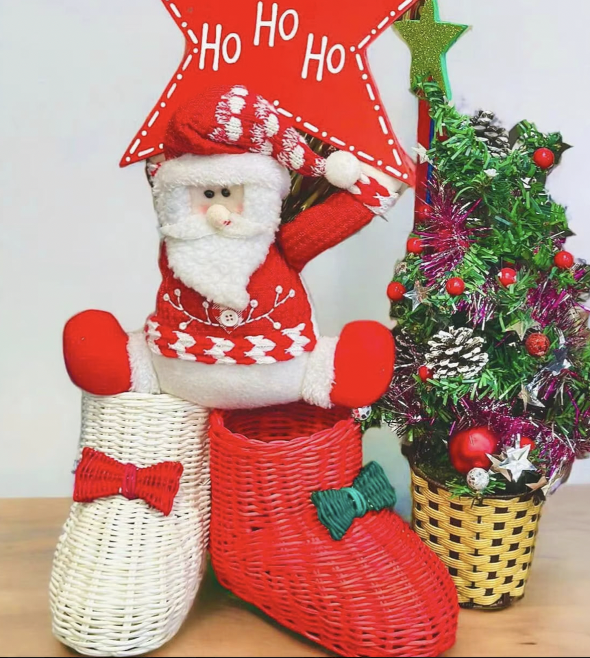 Juego de adornos navideños de mimbre hecho a mano de Vietnam auténtico, decoración de árbol rústico Natural, artesanía para Interior de temporada