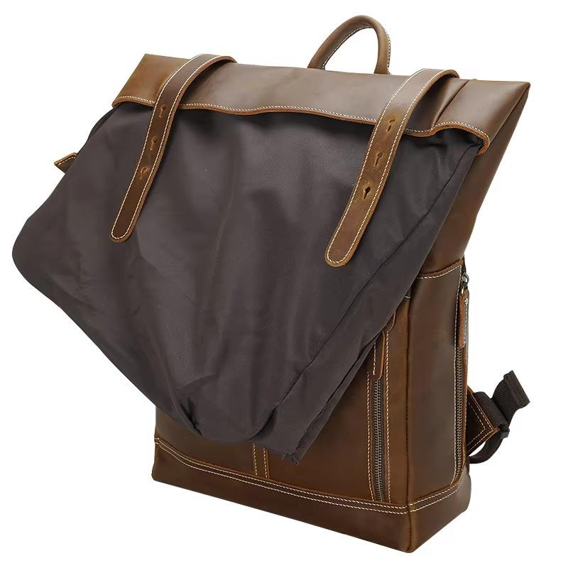 Mochila de Cuero Vintage Auténtica, Impermeable, Antirrobo, para Portátil, Carcasa de Cuero Genuino LBP-0459
