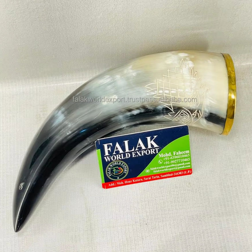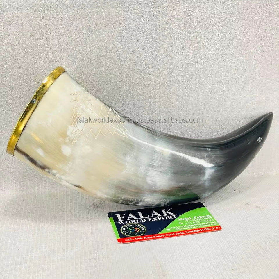 Cuerno de beber vikingo moderno auténtico Cuerno de vaca y buey natural Animal náutico pulido a mano Cuerno tallado Falak World Export