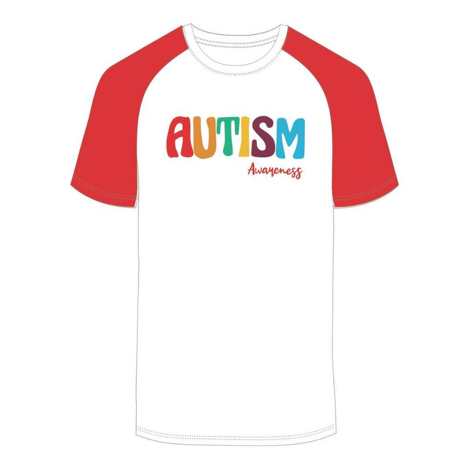 Concienciación sobre el autismo Chenille bordado blanco mangas raglán camiseta Unisex 100 algodón Jersey apoyo autismo diseño de rompecabezas