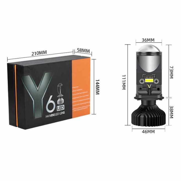 Mini proyector LED Y6 para coche y motocicleta, Mini proyector Y6 H4, lente de faro Bi Led, miniproyector H4 Y6 Led 20000 H4, para coche y motocicleta, 2 unidades