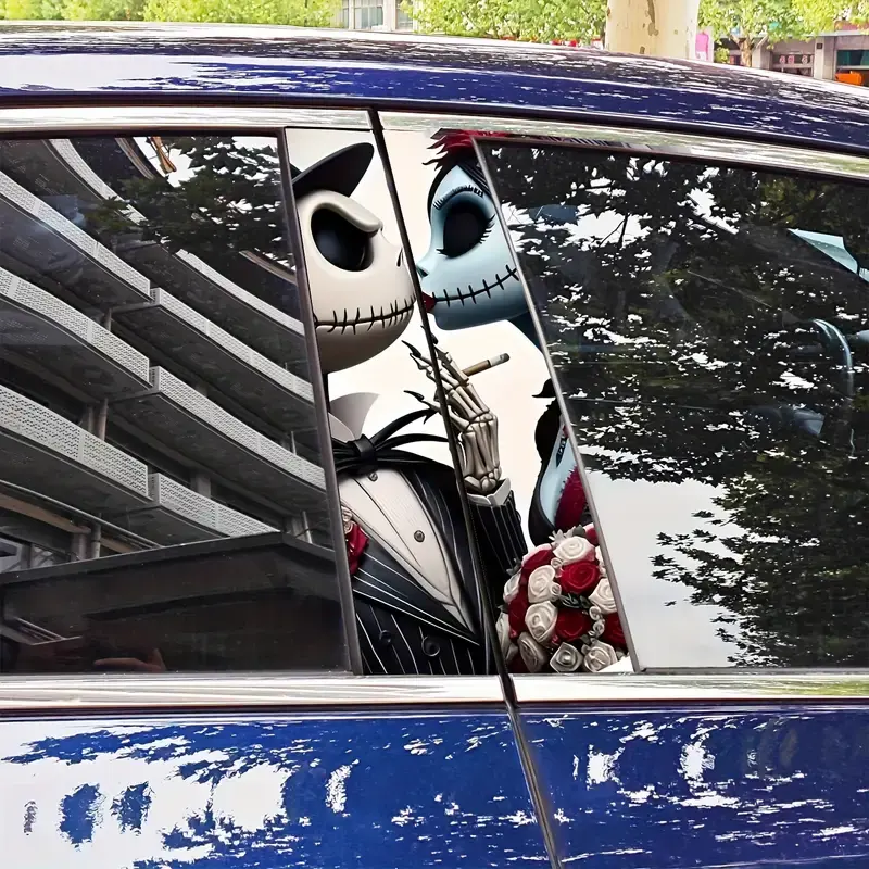 Auto decoración Exterior PVC autoadhesivo dibujos animados creativo Jack Skellington Sally Universal Fit 2 piezas XGS marca pegatinas de coche