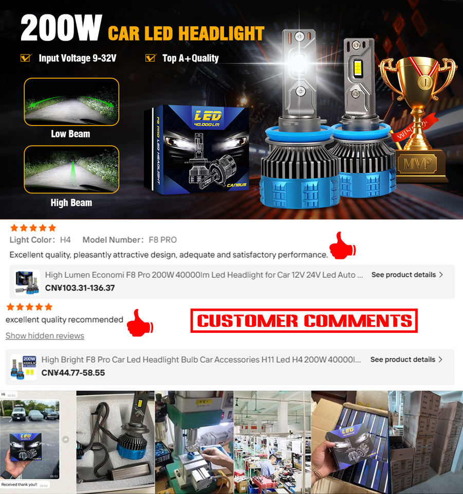 Faro Delantero LED para Auto 200W 40000LM Bombilla H4 H7 H11 9005 24V Blanco Canbus Luz LED Automotriz para Carro Camión Motocicleta Iluminación