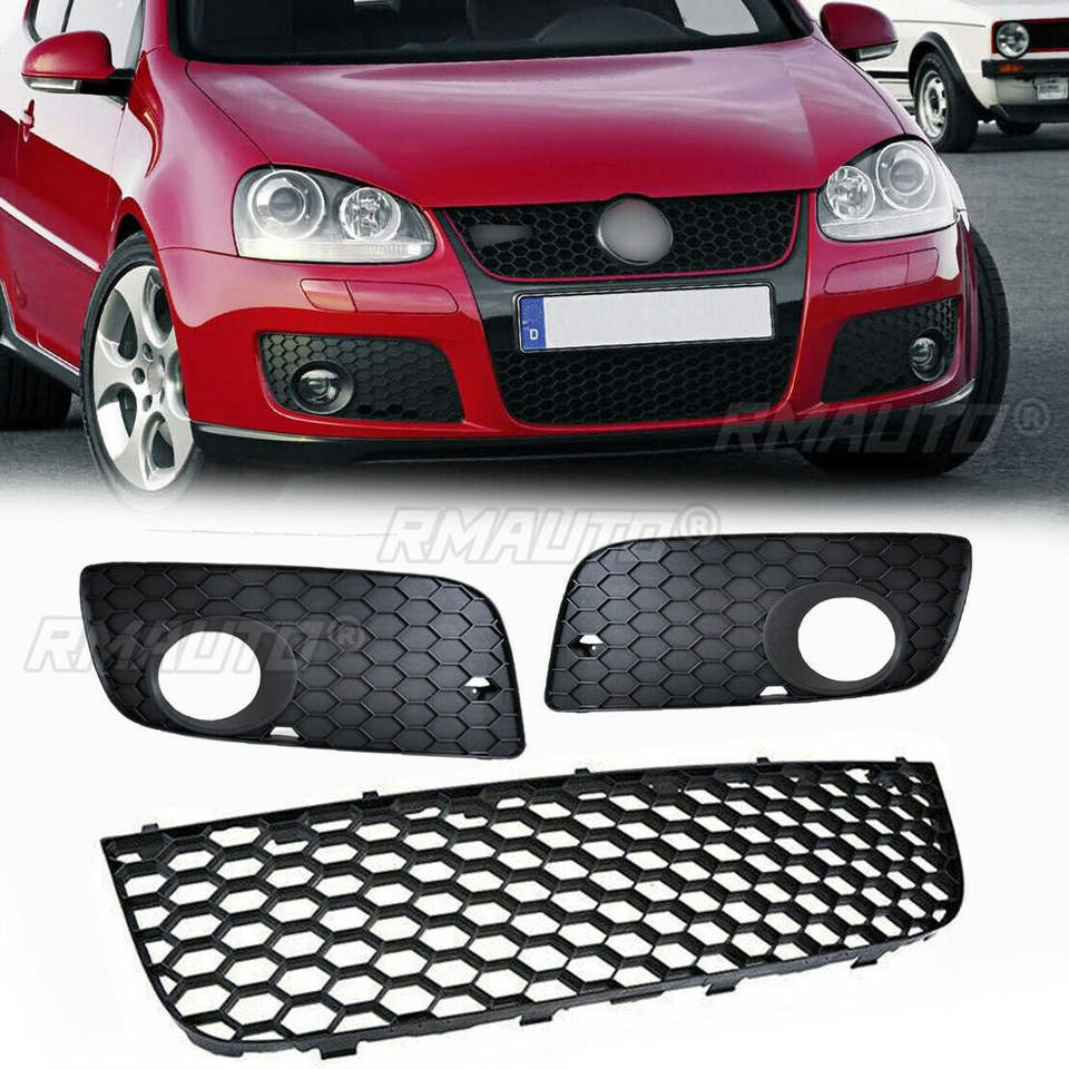 Rejilla Delantera Inferior de Malla para Parachoques + Cubierta de Faros Antiniebla para VW MK5 Golf GTI Jetta GT 2005 2006 2007 2008 2009