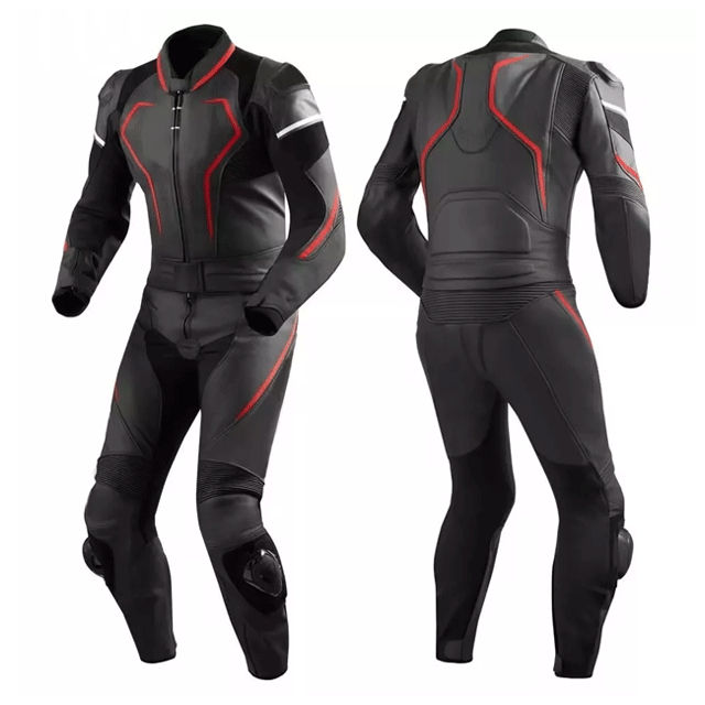 Traje de Motociclismo y Automovilismo de Cuero Vacuno Genuino, Transpirable, Cortavientos, Estampado, de Una y Dos Piezas, Estilo Holgado para Hombre