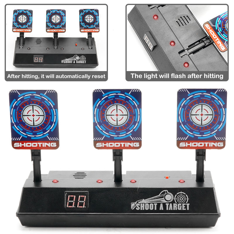 Objetivo de Tiro Electrónico con Reinicio Automático de 3 Posiciones, Puntuación Electrónica, Efectos de Sonido y Luz, Logotipo Personalizado Aceptado
