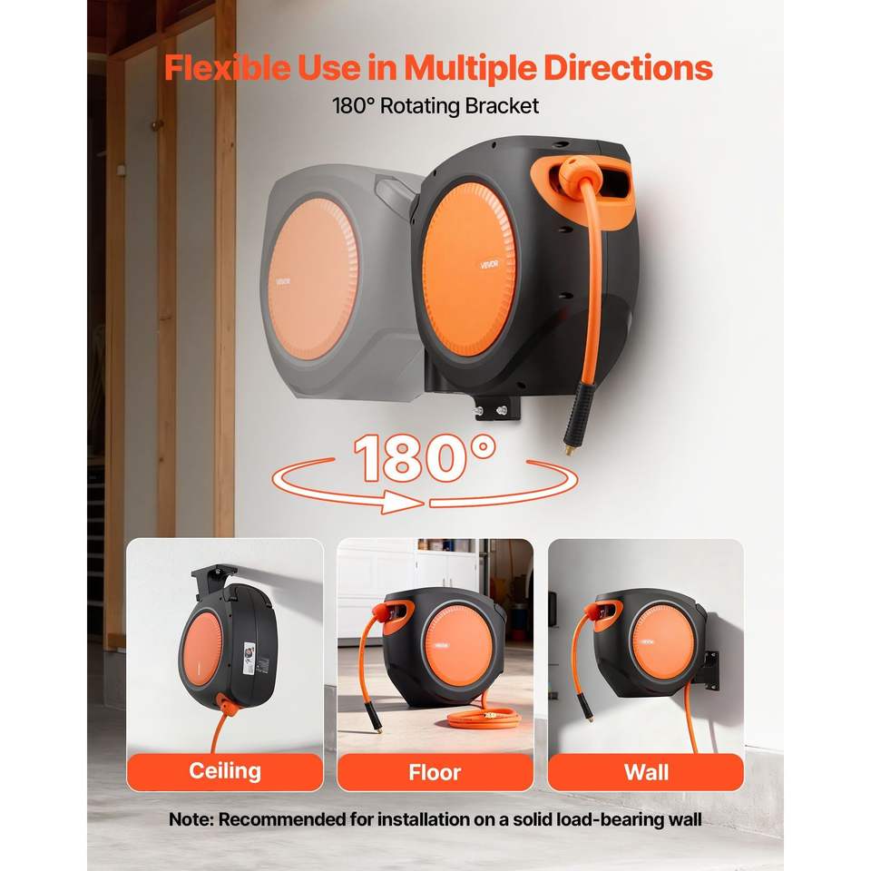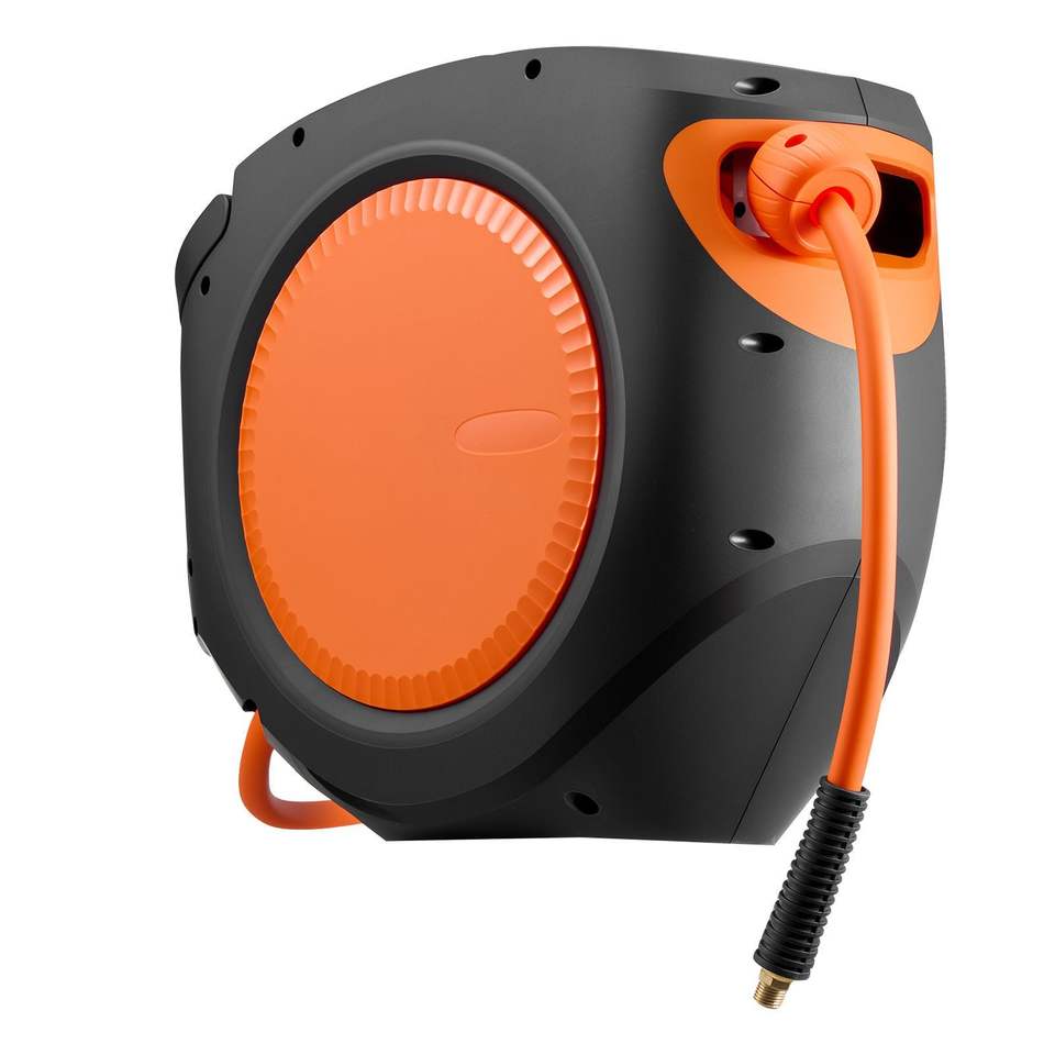 Carrete de manguera de aire híbrido de 6.6 pulgadas con rebobinado automático, 3/8 x 80 pies, mangueras retráctiles para compresor de aire, piezas neumáticas encapsuladas con presión máxima de 300 PSI