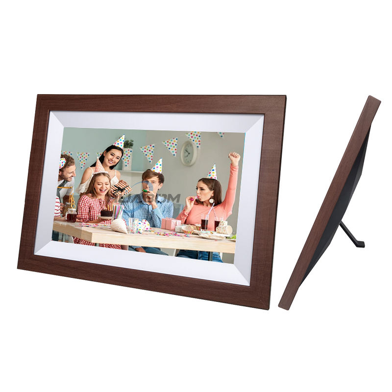 Marco de Fotos de Madera con Pantalla HD de Rotación Automática, Pantalla Táctil de Madera Maciza, WiFi para Decoración de Pared con Collage, Compatible con MP3 y AVI
