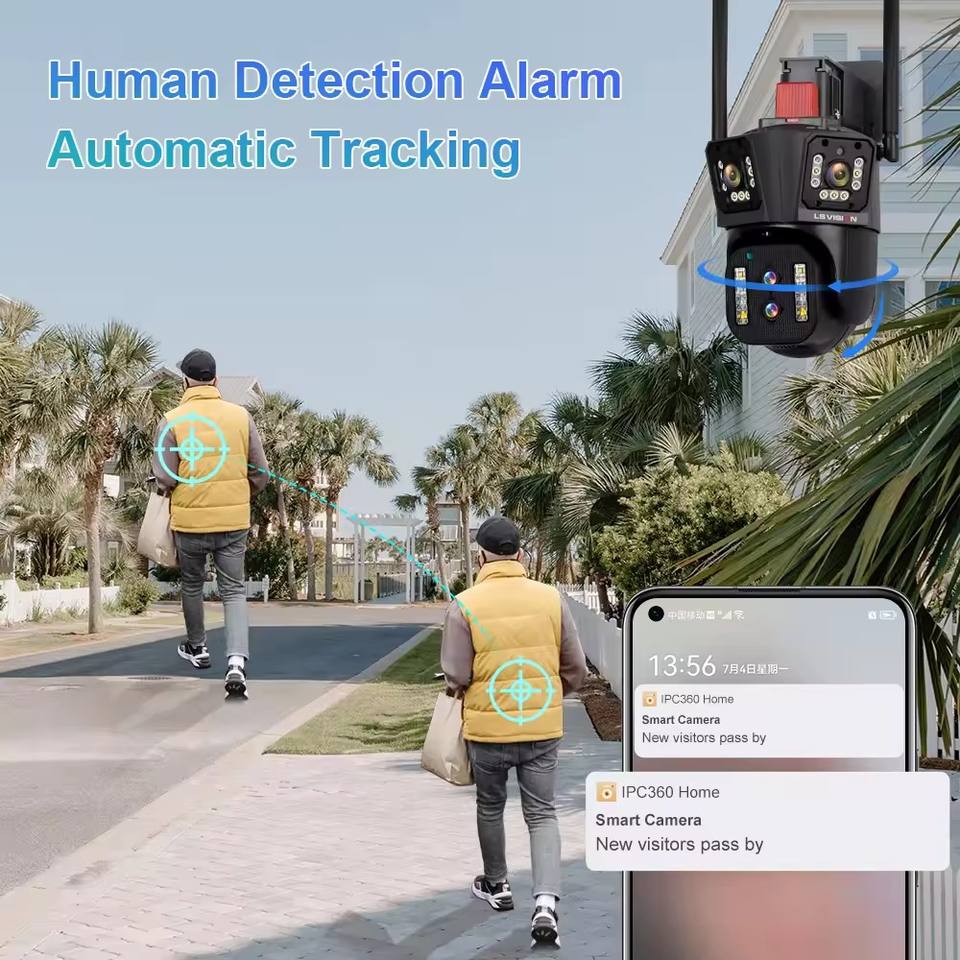Sistema de Cámara de Seguridad WIFI con Zoom Óptico de 10X y Seguimiento Automático de 8K para Exteriores, Cámara PTZ de Cuatro Lentes