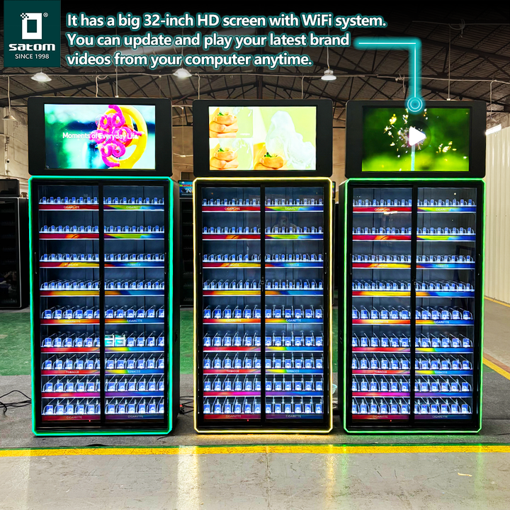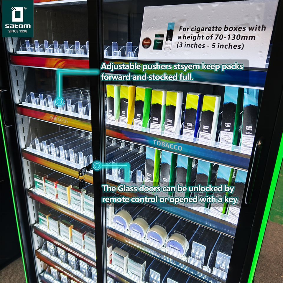 Puerta de cristal con Control remoto de apertura automática, tienda de humo de Metal, estante para cigarrillos, estante de exhibición de tabaco con luz Led, pantalla publicitaria superior