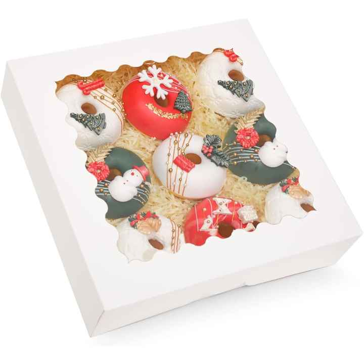 Caja para Pasteles con Ventana y Apertura Automática, 9x9x2.5 Pulgadas, Cajas Blancas para Pastelería, para Galletas, Pasteles, Donuts y Dulces