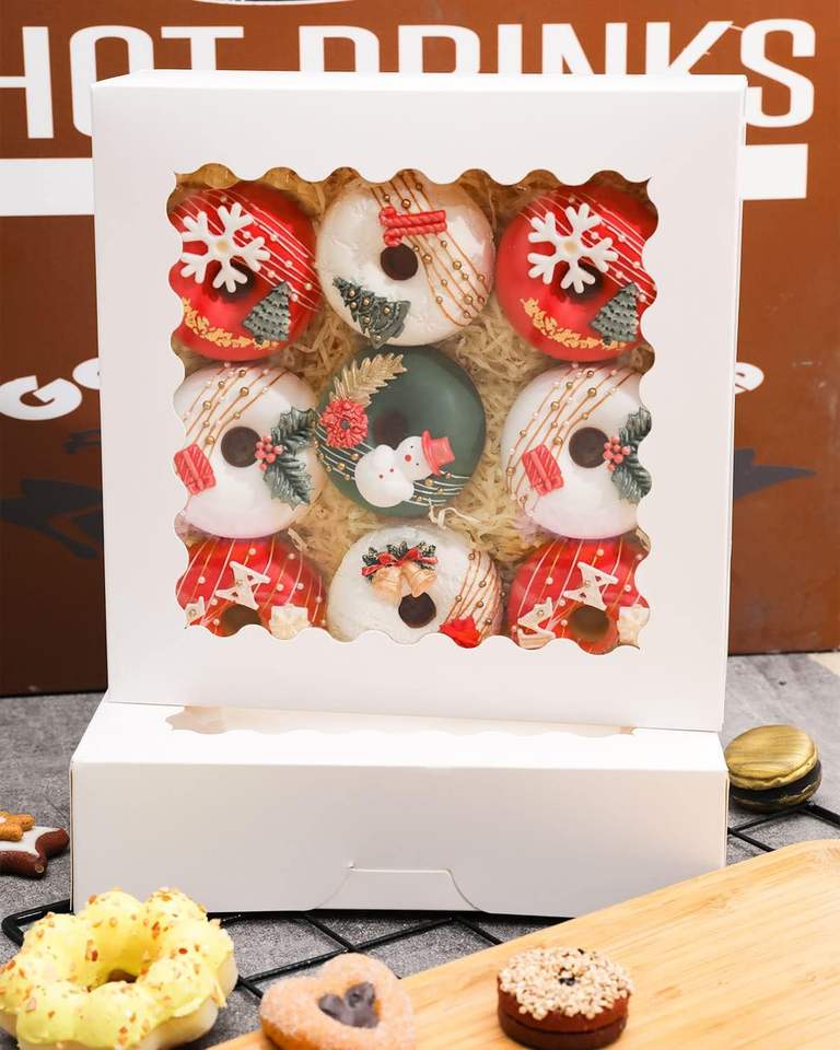 Palabra clave:Caja de pastel con ventana emergente automática, cajas de donuts y pasteles, caja blanca para panadería