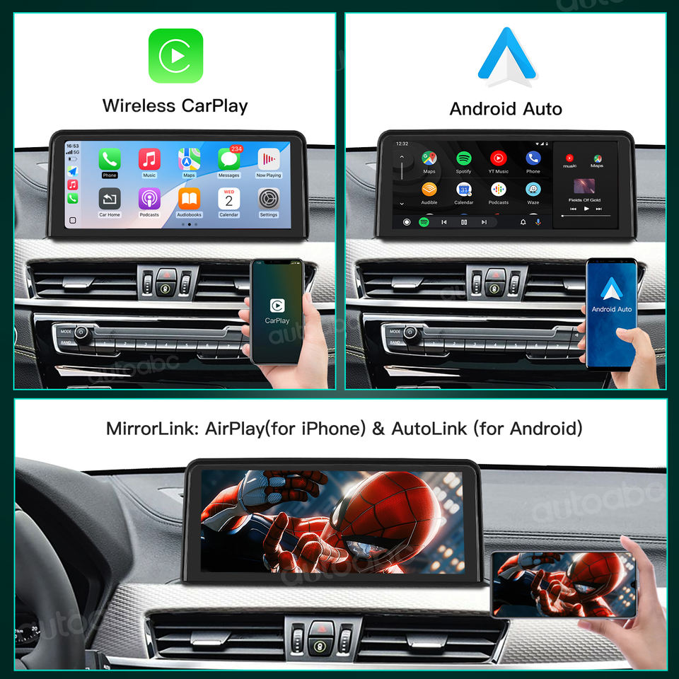Pantalla Multimedia Táctil Inalámbrica Autoabc con Sistema Operativo Linux, CarPlay y Android Auto, 1 Año de Garantía para BMW Serie 1/2/3/4