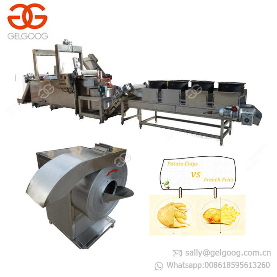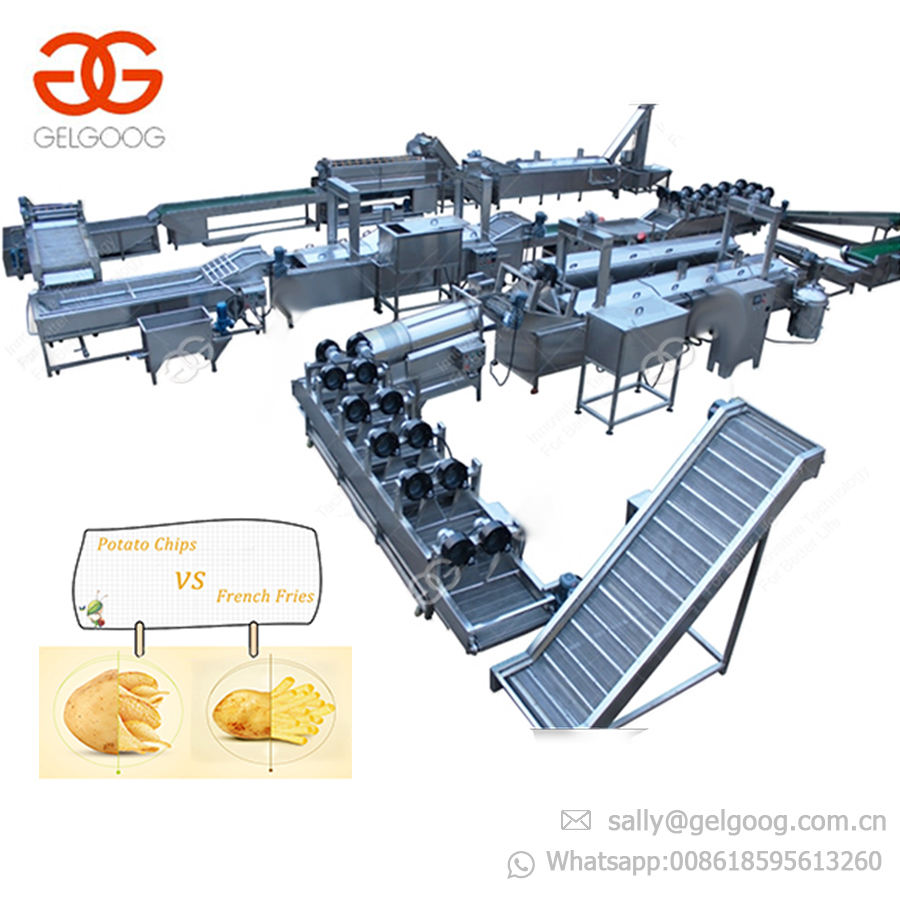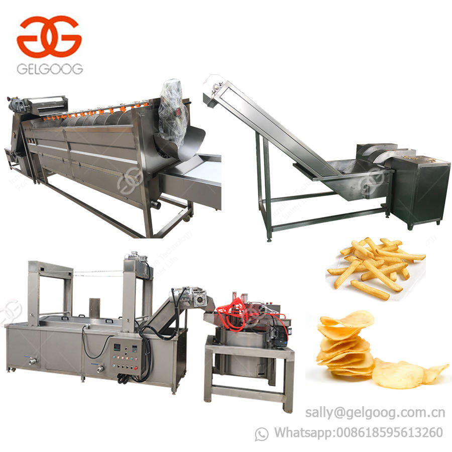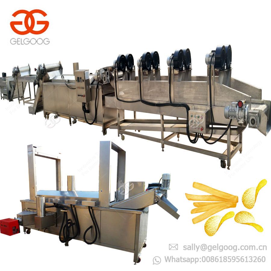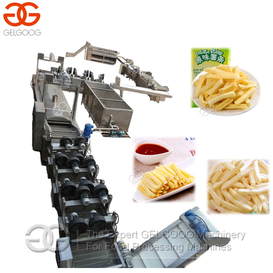 Embalaje de madera estándar de exportación automática frito papas fritas congeladas fabricante línea de producción de patatas fritas que hace la máquina precio.