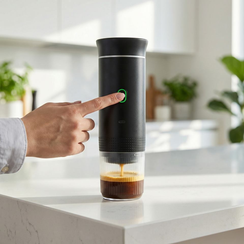 Cafetera Automática Portátil a Batería con Sistema de Cápsulas de Acero Inoxidable y Tanque de Agua de 0.5L