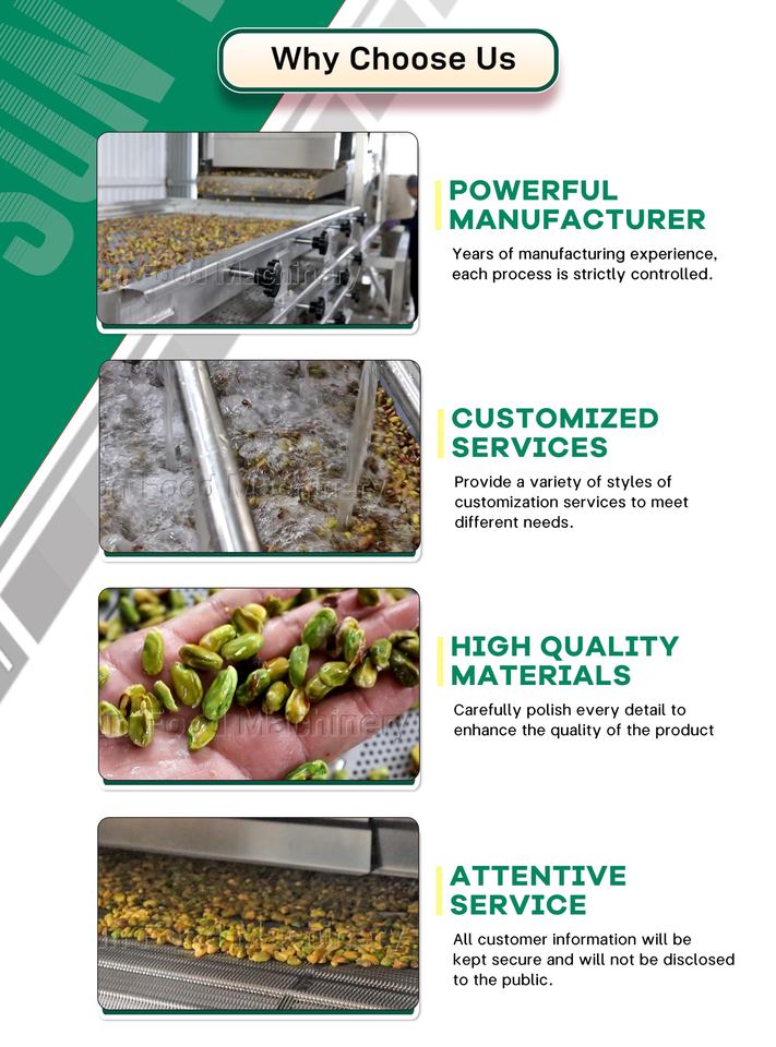 Soluciones Automatizadas e Integradas para el Procesamiento de Frutos Secos: Clasificación, Pelado, Tostado, Envasado, Línea de Procesamiento de Anacardos, Cacahuetes, Pistachos