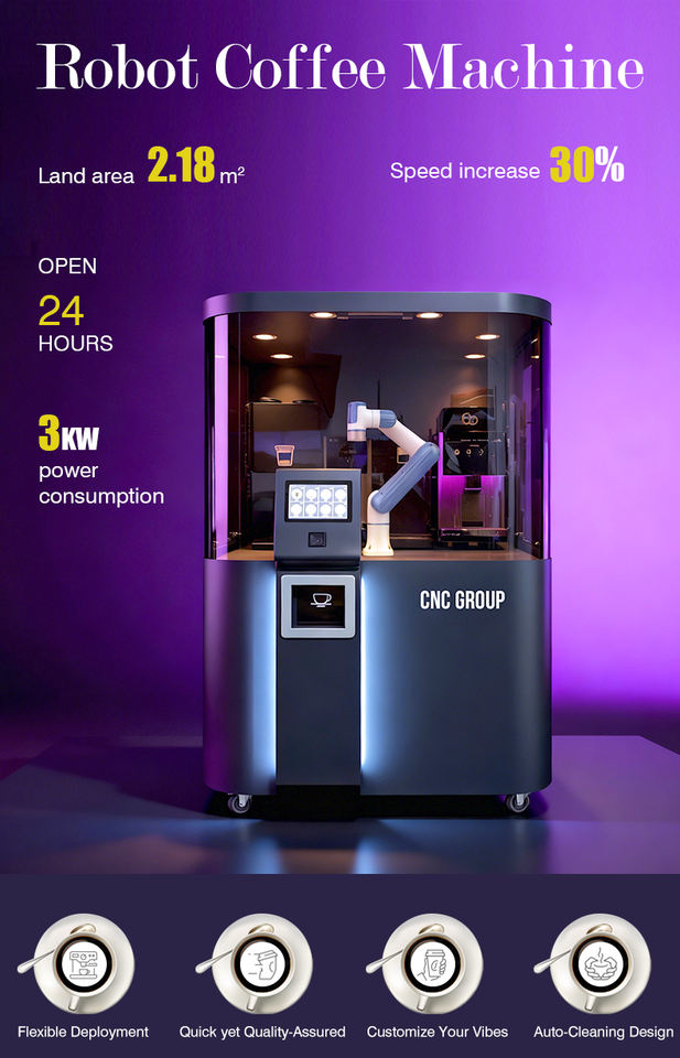 Máquina Expendedora de Café Automatizada con Brazo Robótico, Pantalla Táctil Personalizable, Máquina de Espresso Multisabor