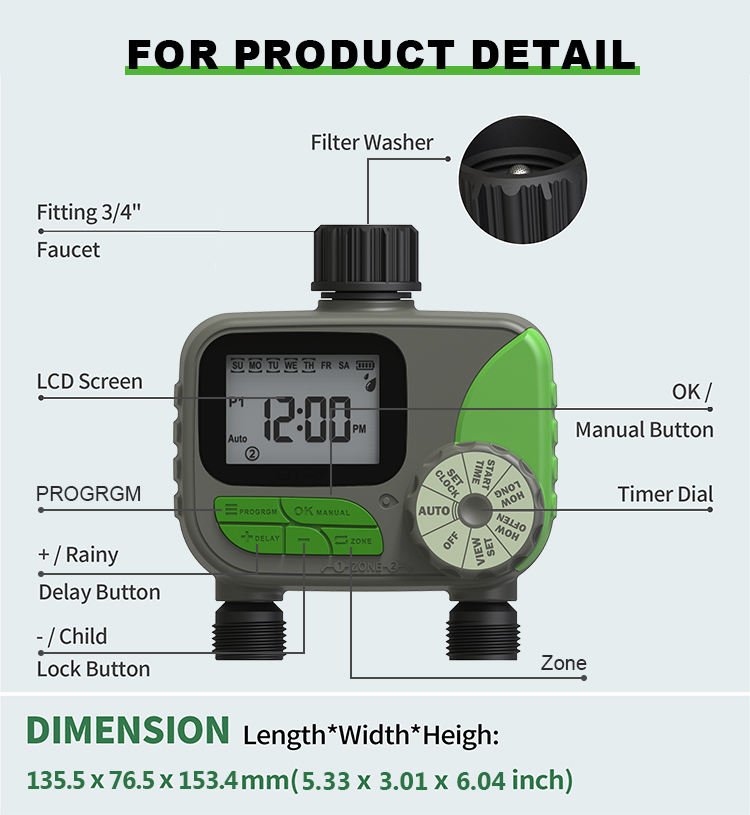 Product name:2 Zone Digital Irrigation Timer for Weekly Programming