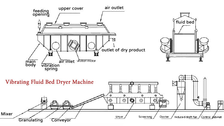 Secador de lecho fluidizado vibratorio automático de acero inoxidable de 220V, equipo de secado por pulverización para procesamiento de alimentos, motor de caja de cambios incluido